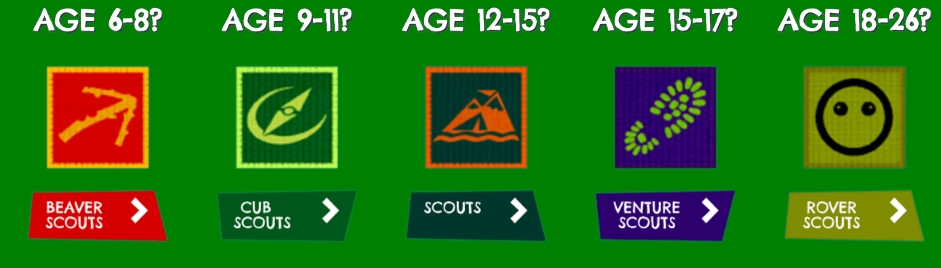 We have Beaver, Cub, Scout, Venture and Rovers sections for Boys and Girls and are always recruiting for new youth members and Adult Scouters